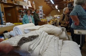 Auch warme Finken und Wolle zum Stricken ist vorhanden