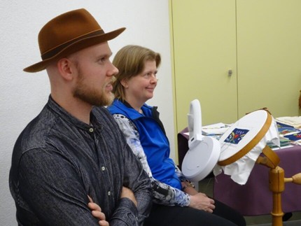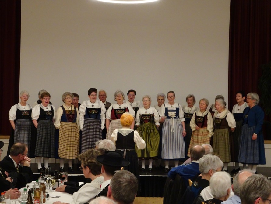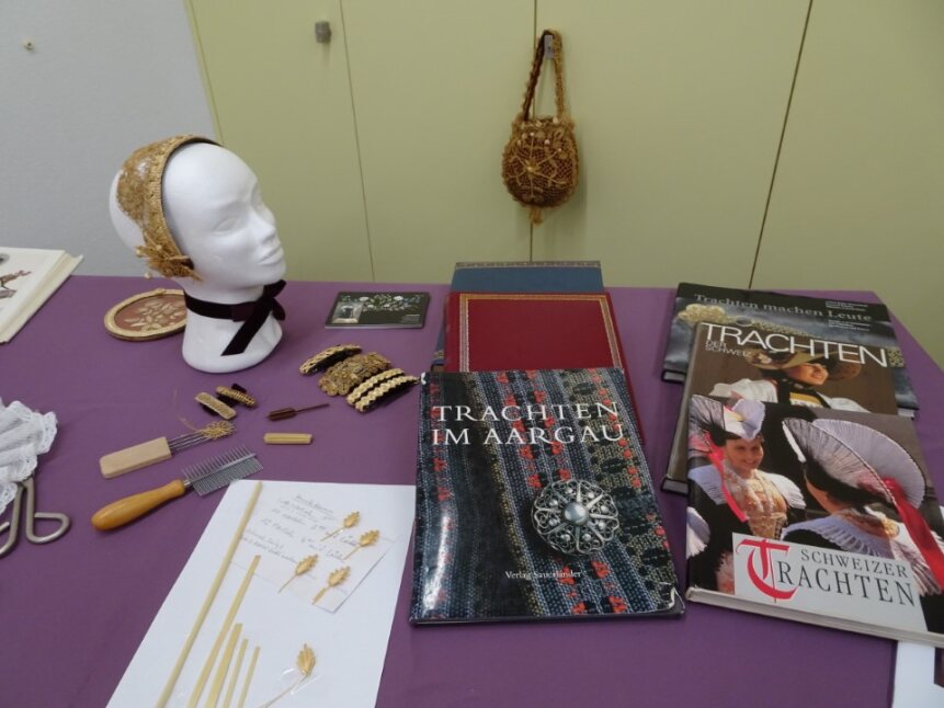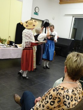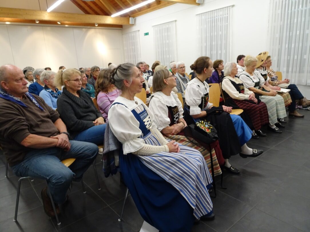 Die Trachten, ein interessantes Thema. Unsere Gäste hören den Ausführungen von Helen und Margrit aufmerksam zu.